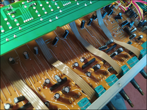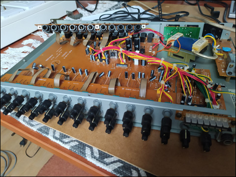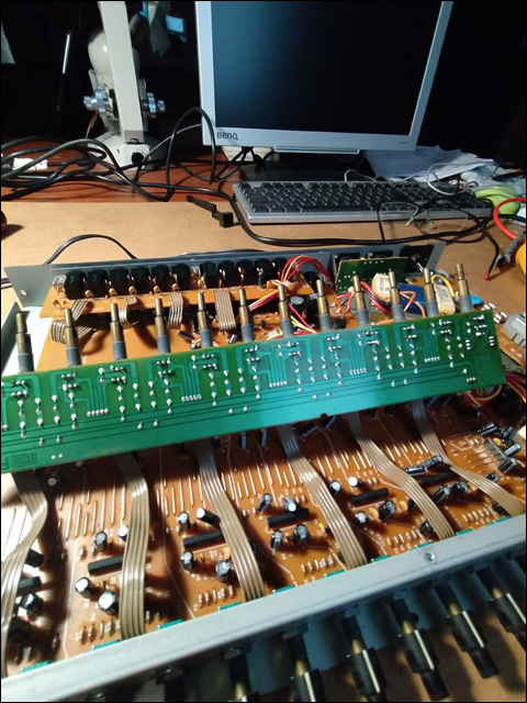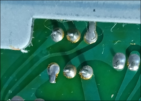 na uszkodzenie wejściowych wzmacniaczy operacyjnych. Zamówiłem więc 10 sztuk w Chinach i gdy dotarły - wymieniłem dwa układy w dwóch kanałach. Po tej wymianie wszytko jest OK. Naprawa prawie zakończona. Jak wiele sprzętów z tamtej epoki - płyty były lutowane "na fali" i w związku z tym ilość lutowia okazała się być nie do końca wystarczająca, i w miarę upływu czasu oraz